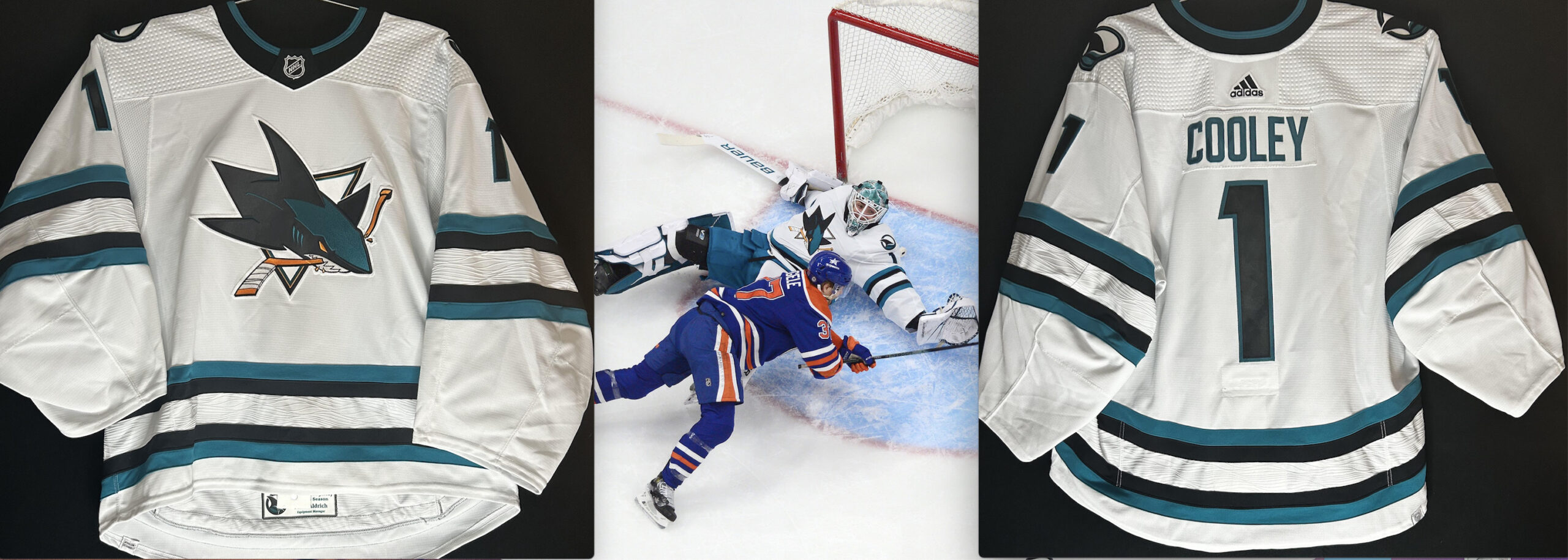 2023-2024 San Jose Sharks Game Worn Rookie Jersey. # 31 Devin Cooley