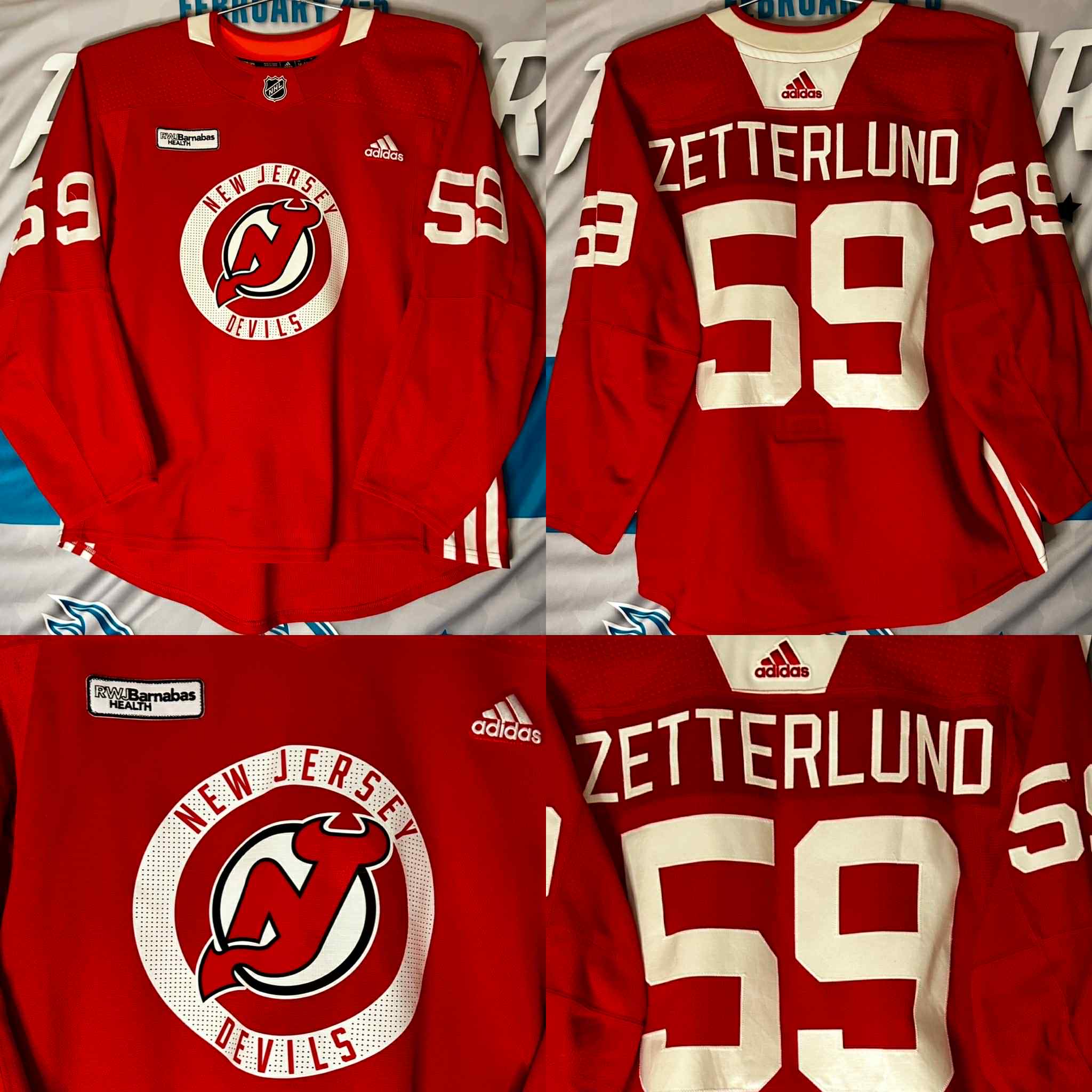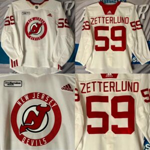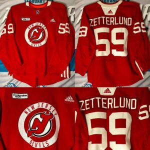 NHL New Jersey Devils Training camp/Practice worn Red-White Jersey. #59 Fabian Zetterlund